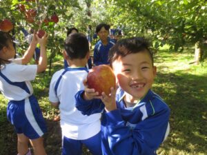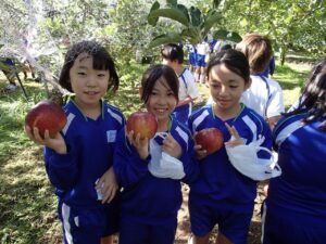 自分たちで収穫したりんごはとてもおいしそうに見えました!