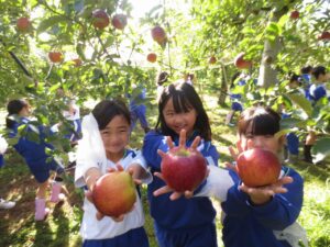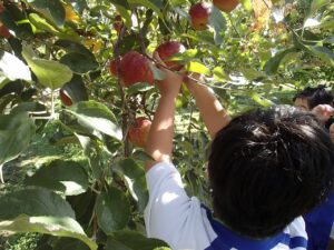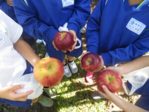 総合の学習で、富居りんご園にてりんごの収穫体験をしてきました。