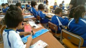 初めて行うくぎ打ちは、「トントン、トントン…」と夢中になって取り組んでいました。