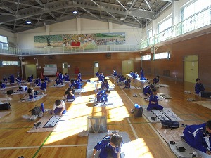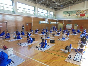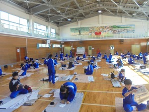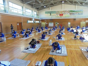 文字の形やとめ、はね、はらいを意識しながら、「美しい空」という文字をきれいに書けるように頑張っています。