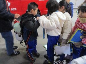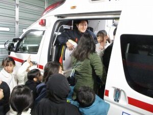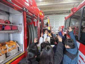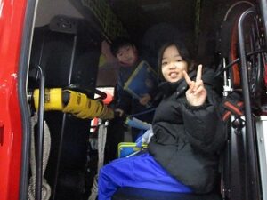 実際に消防車や救急車に乗らせてもらい、初めて目にする道具や設備に興味津々でした。