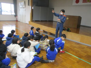 子共たちはとても真剣に消防士さんの話を聞きながら、メモを取っていました。