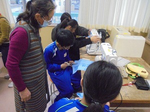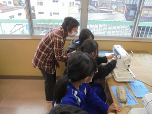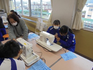 11月26日(水)、27日(木)、28日(金)の3日間、地域の方に来校していただき、ミシンの使い方を教わりました。