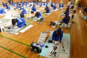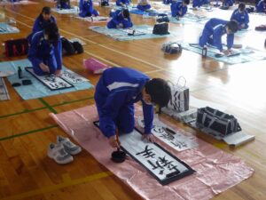 書初め練習【6年生】 - Category - 6年日記 1月の校内書初め大会では、6年生は「新春の志」を書きます。練習では、手本をよく見て、筆遣い線の太さを意識して、力強く書きました。冬休みも練習を重ね、校内書初め大会当日を迎えてほしいと思います。