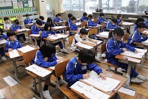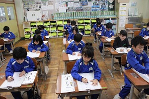 書初め大会【1年生】 - Category - 1年日記 小学校に入学して初めての書初め大会がありました。子供たちは冬休み中に練習してきた成果を発揮しようと、真剣に集中して取り組んでいました。冬休みの間、練習に取り組む子供たちを励まし、応援してくださりありがとうございました!