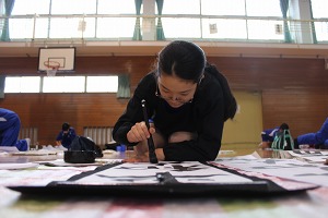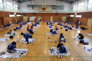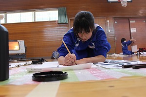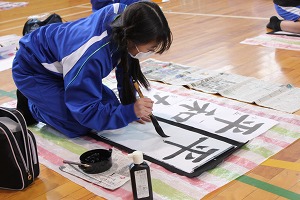 冬休みの練習の成果を発揮し、力強く書きあげていました。