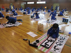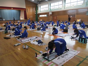 書初め大会【3年生】 - Category - 3年日記 3年生は、初めての毛筆による校内書初め大会を行いました。子供たちは題字である「うめの花」を真剣な表情で書いていました。冬休みの練習の成果もあり、納得のいく字が書けたようです。