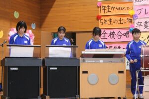 1~5年生からの心温まる出し物やプレゼント、そしてたくさんの「ありがとう」の言葉を受け取りました。
