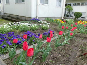 朝方まで降っていた雨が上がり、子供たちが元気に登校してきました。