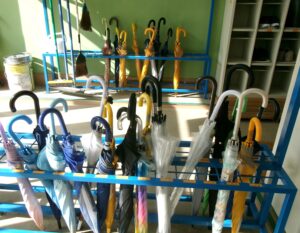 児童玄関に行くと傘が取り出しやすく整頓されているのに気付きました。