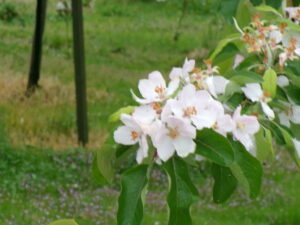 学校周辺にはりんごの花が咲いています。